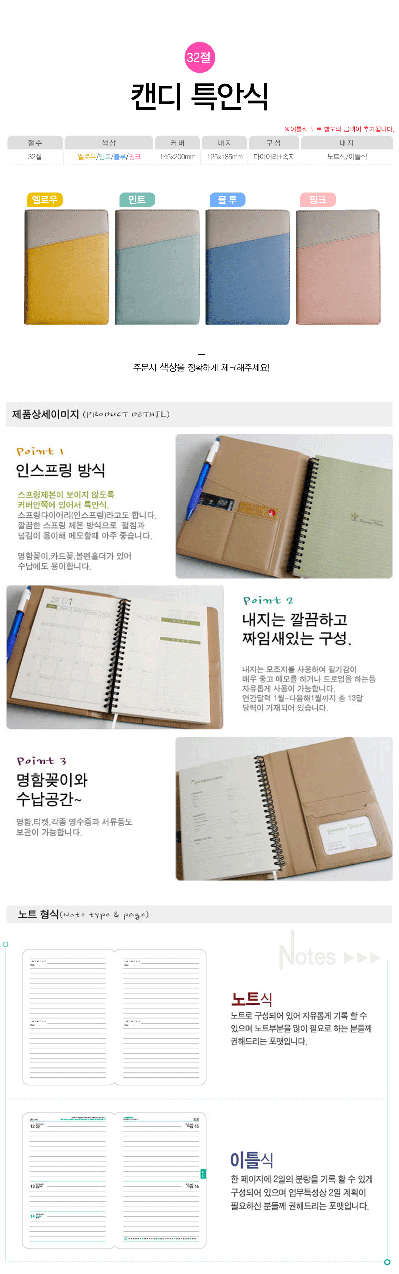 캔디 특안식 스프링 다이어리 / BLUE / 32절