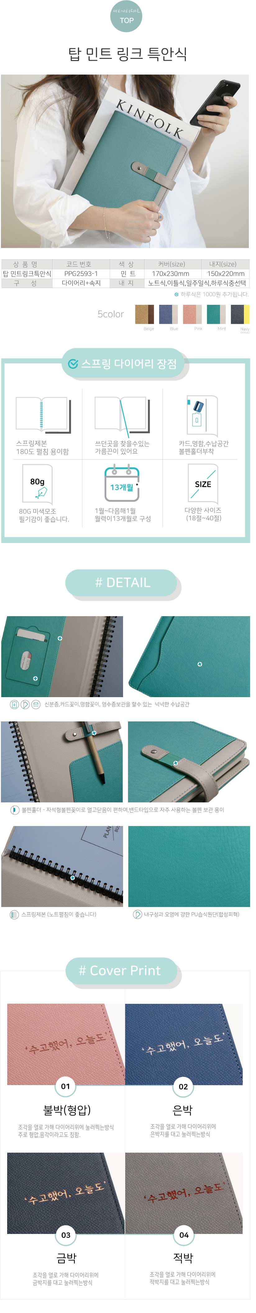 탑 링크자석 특안식 스프링 다이어리 / 민트 / 25절