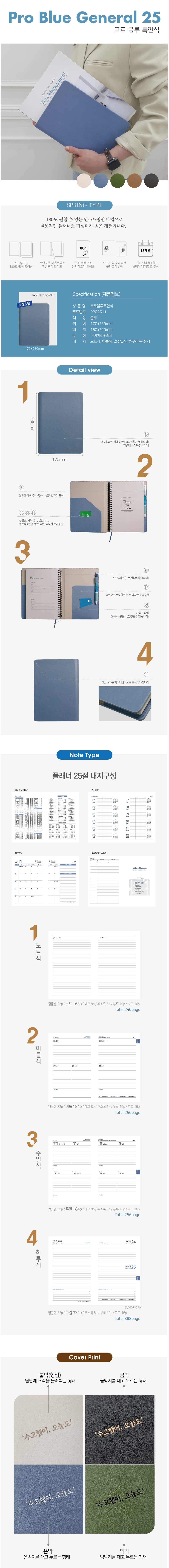 프로 특안식 스프링 다이어리 / 블루 / 25절