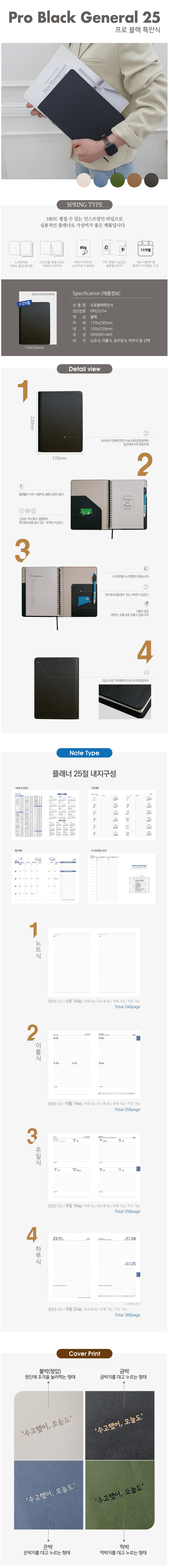 프로 특안식 스프링 다이어리 / 블랙 / 25절