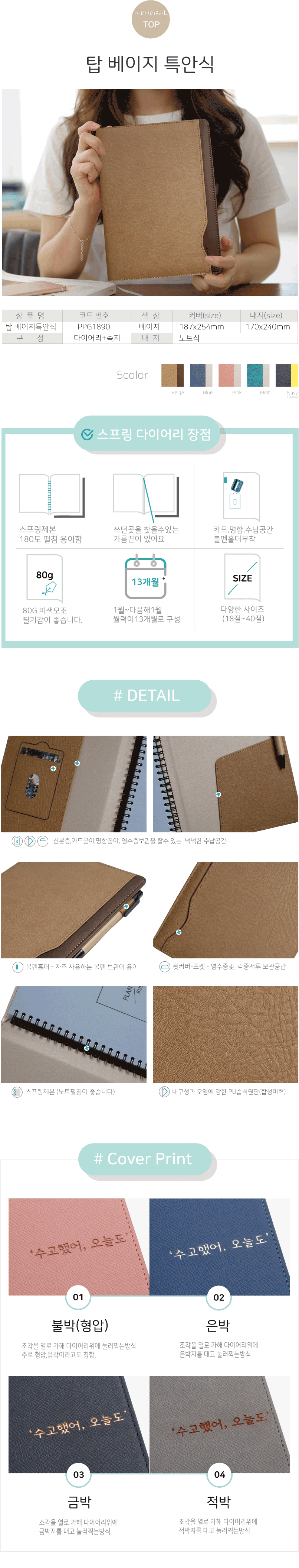 탑 특안식 스프링 다이어리 / 베이지 / 18절