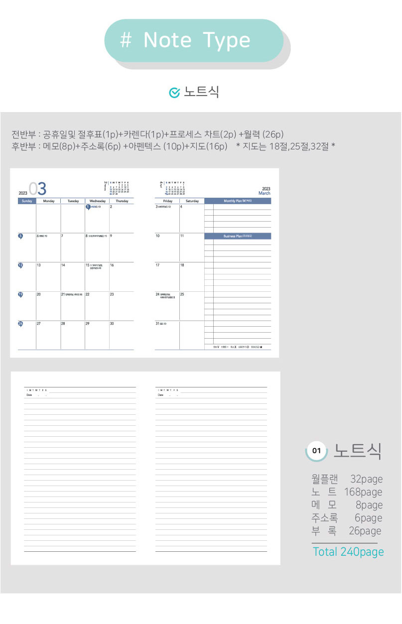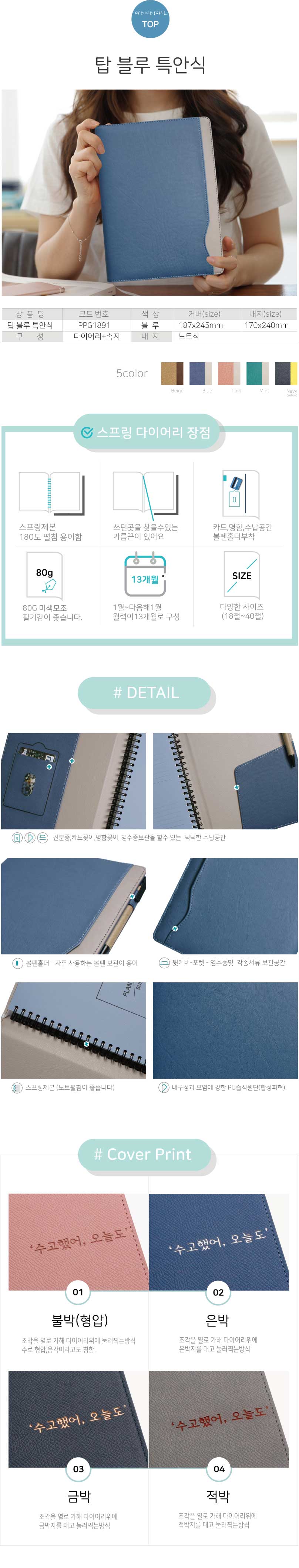 탑 특안식 스프링 다이어리 / 블루 / 18절