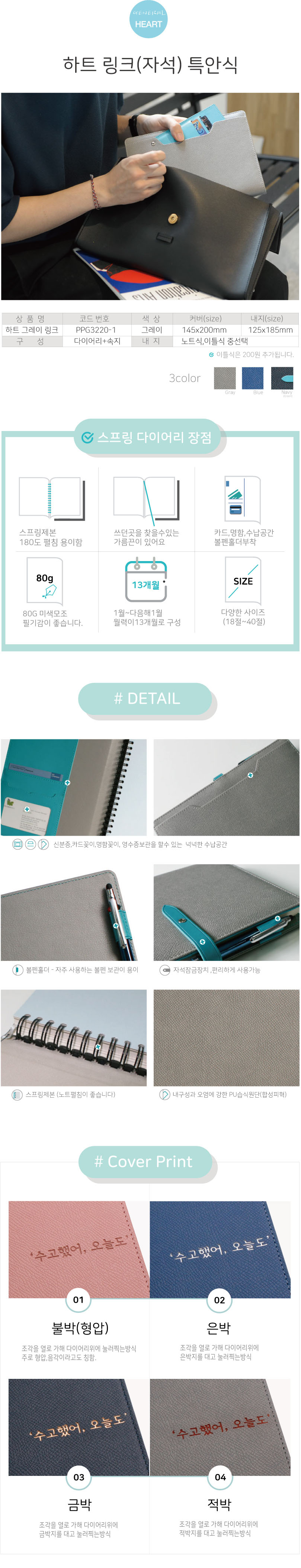 하트 링크(자석) 특안식 스프링 다이어리 / 그레이 / 32절