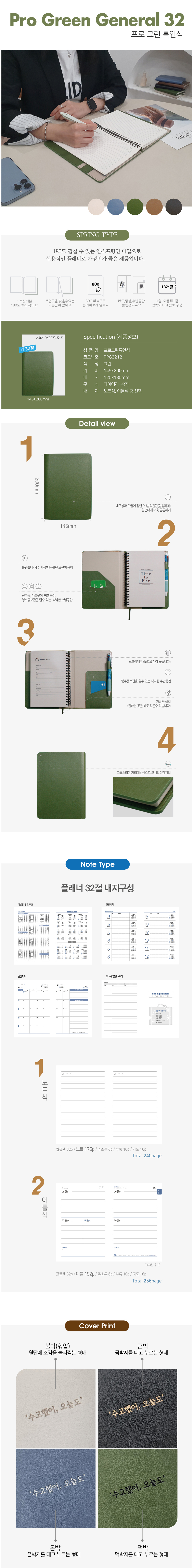 프로 특안식 스프링 다이어리 / 그린 / 32절