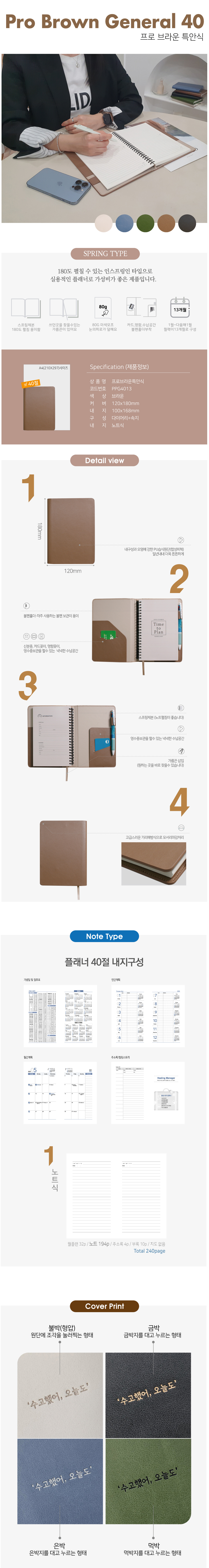 프로 특안식 스프링 다이어리 / 브라운 / 40절