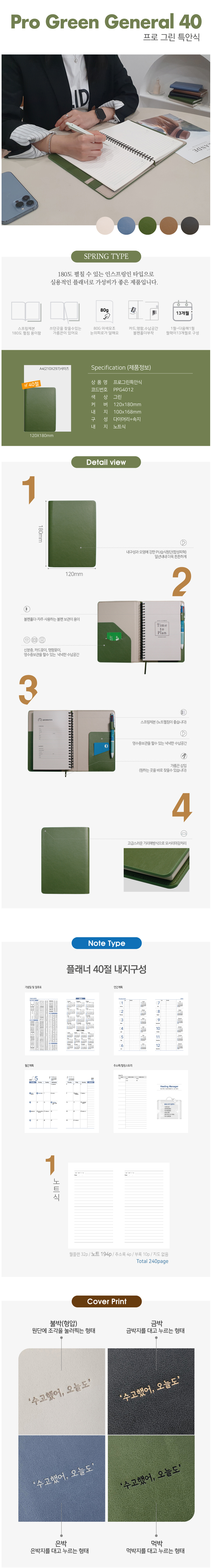 프로 특안식 스프링 다이어리 / 그린 / 40절