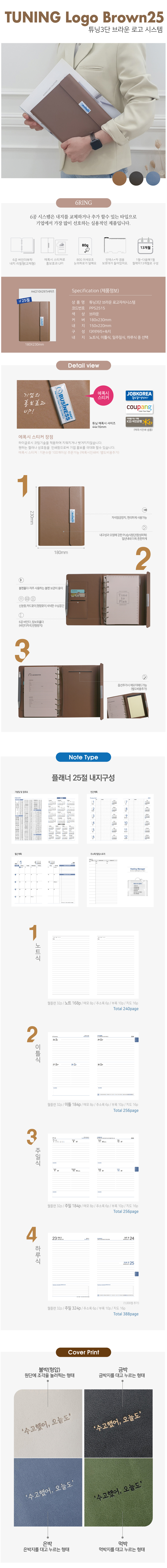 튜닝 로고 3단(자석) 시스템 다이어리 / 브라운 / 25절SALE