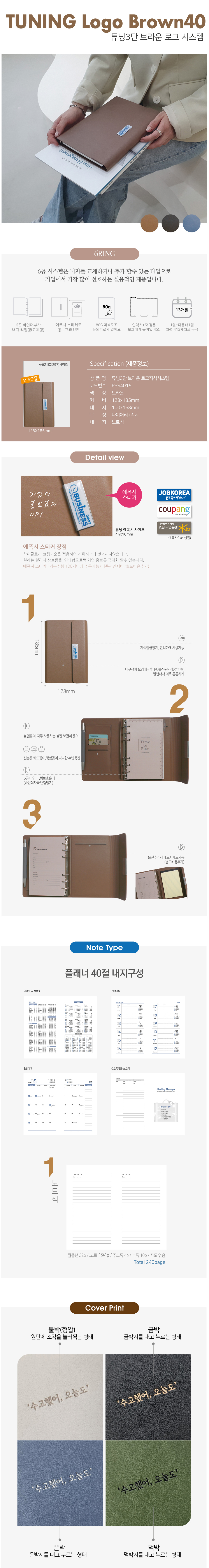 튜닝 로고 3단(자석) 시스템 다이어리 / 브라운 / 40절