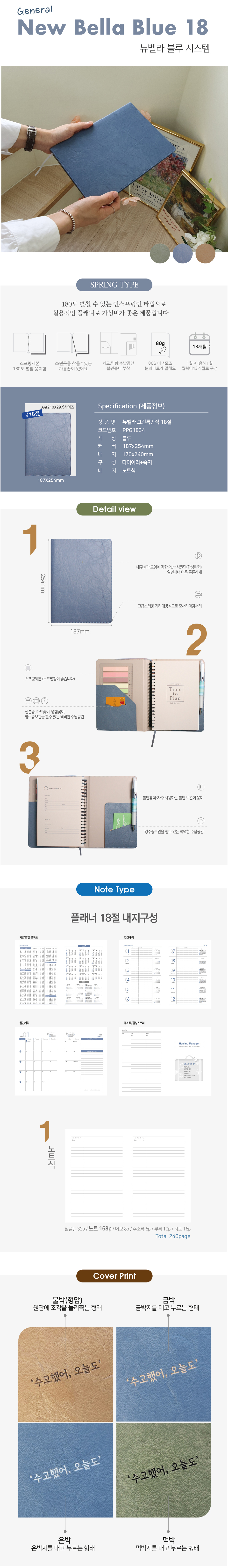 뉴벨라 특안식 스프링 다이어리 / 블루 / 18절