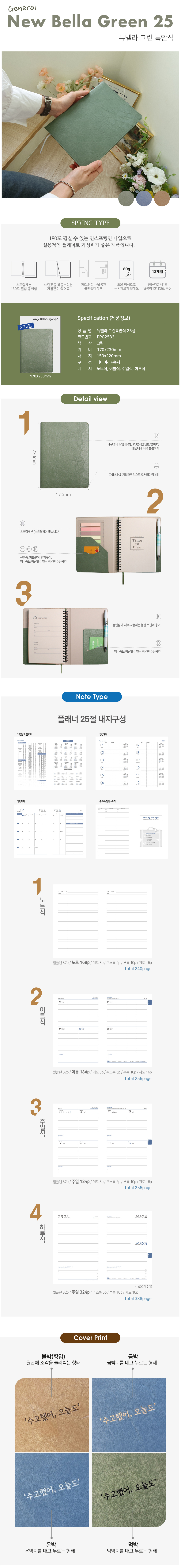 뉴벨라 특안식 스프링 다이어리 / 그린 / 25절