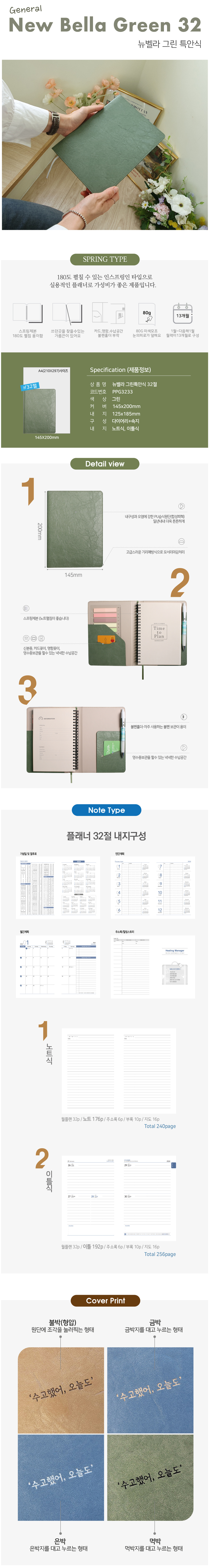 뉴벨라 특안식 스프링 다이어리 / 그린 / 32절
