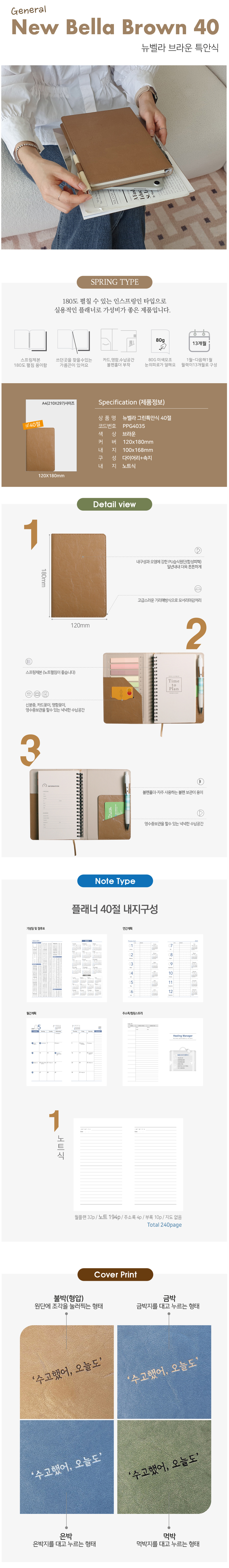 뉴벨라 특안식 스프링 다이어리 / 브라운 / 40절
