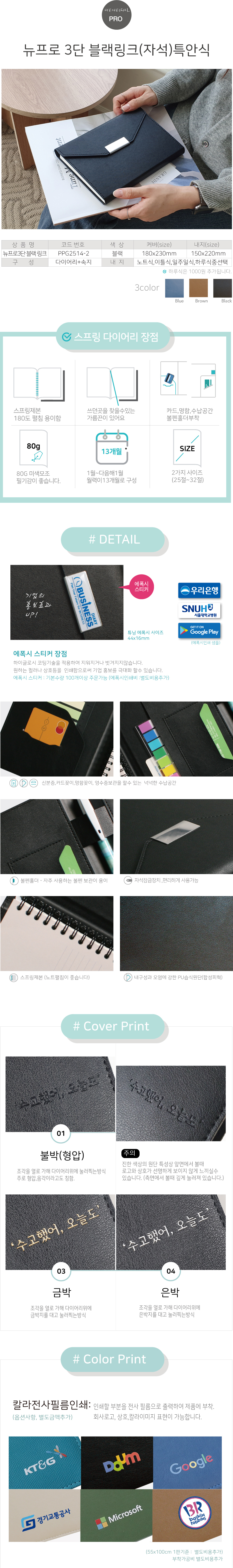 뉴프로 3단링크(자석) 특안식 스프링 다이어리 / 블랙 / 25절