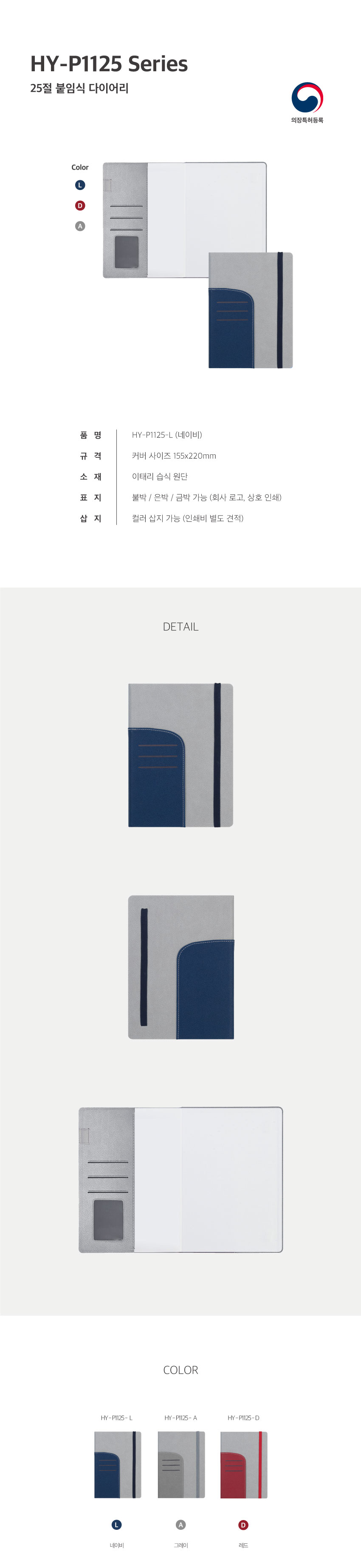 HY P1125 양장 붙임식 다이어리 / 네이비 / 25절