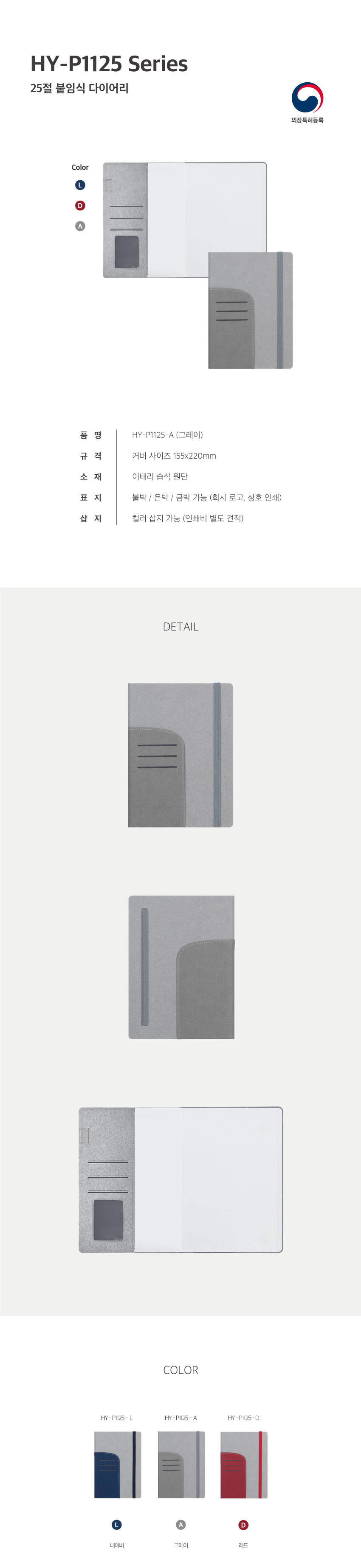 HY P1125 양장 붙임식 다이어리 / 그레이 / 25절