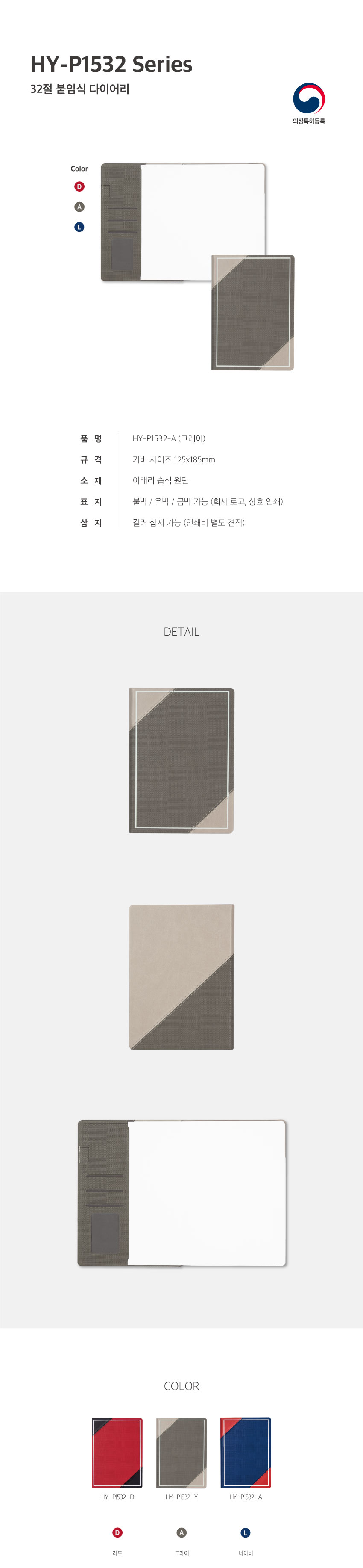 HY P1532 양장 붙임식 다이어리 / 그레이 / 32절