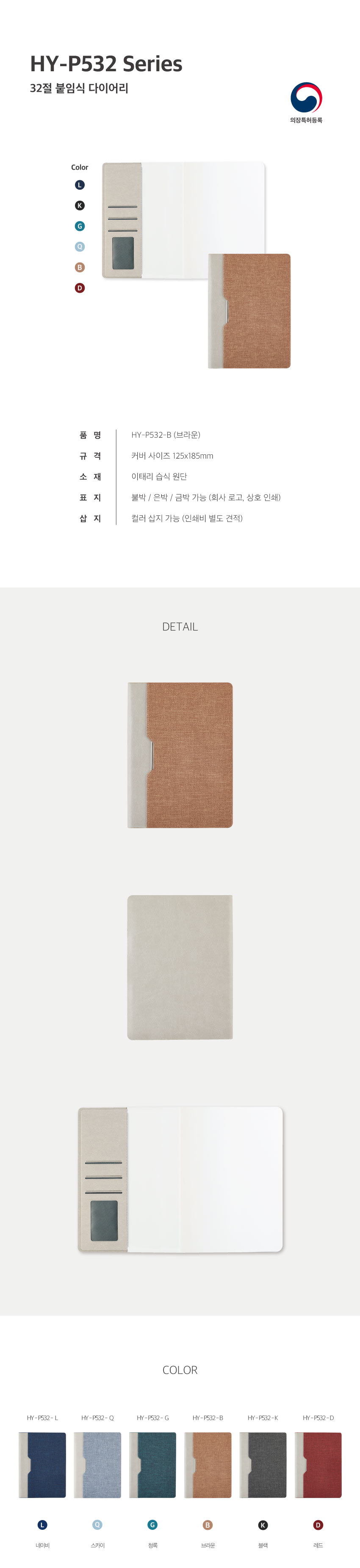 HY P532 양장 붙임식 다이어리 / 브라운 / 32절
