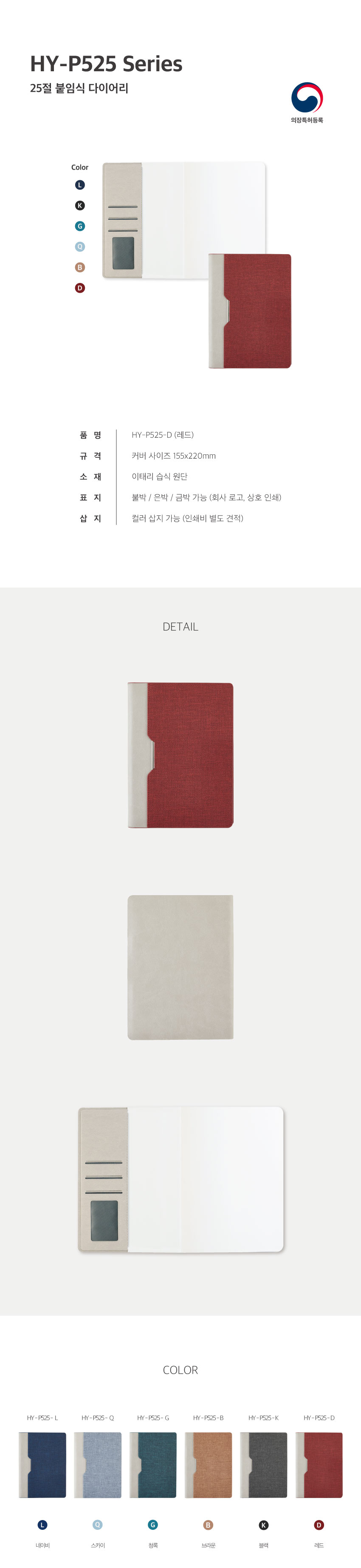 HY P525 양장 붙임식 다이어리 / 레드 / 25절