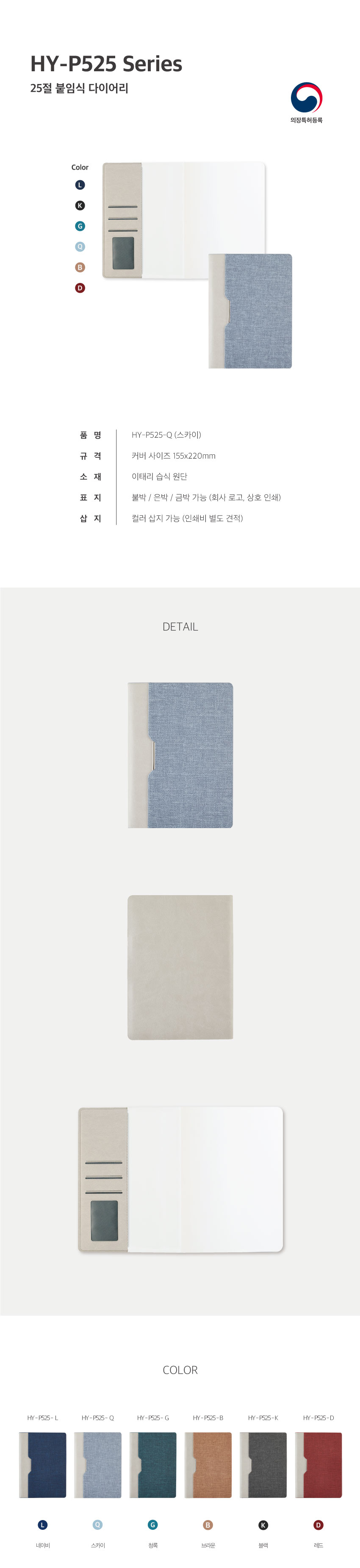 HY P525 양장 붙임식 다이어리 / 스카이 블루 / 25절