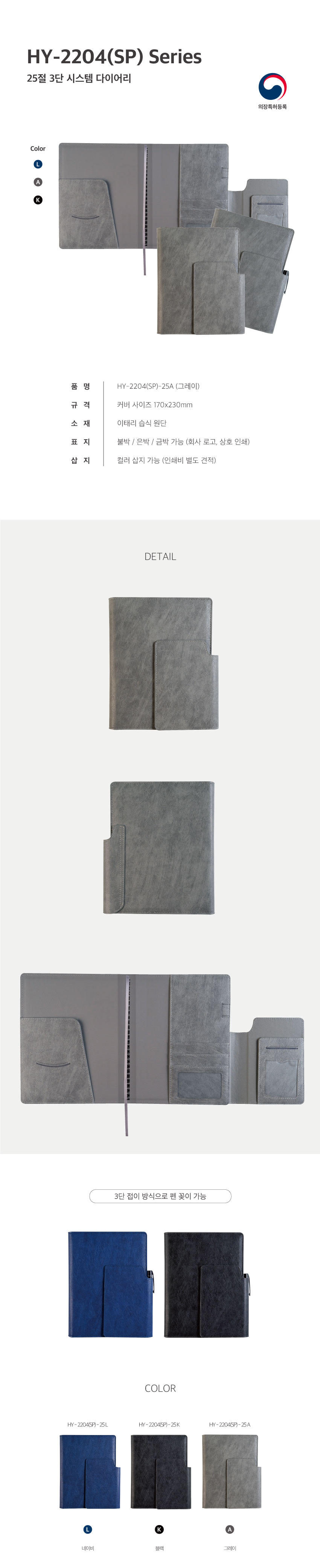 HY 2204(SP)-25 / 특안식 스프링 다이어리 / 3단 자석 / 그레이 / 25절