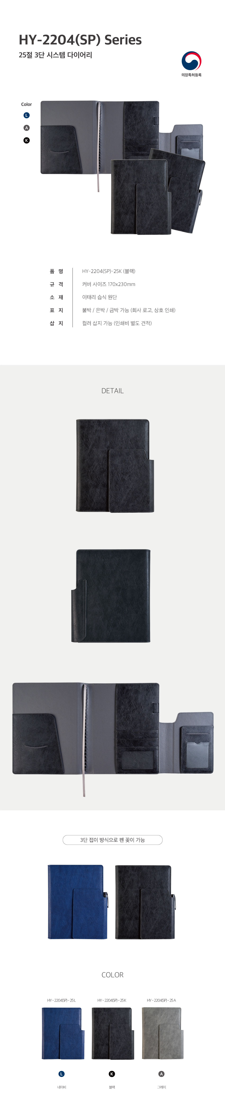 HY 2204(SP)-25 / 특안식 스프링 다이어리 / 3단 자석 / 블랙 / 25절