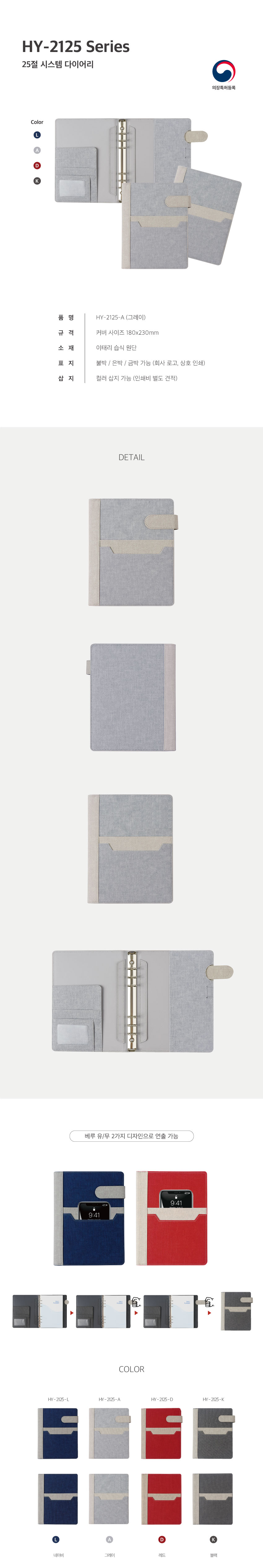 HY 2125 / 6공 시스템 다이어리 / 그레이 / 25절