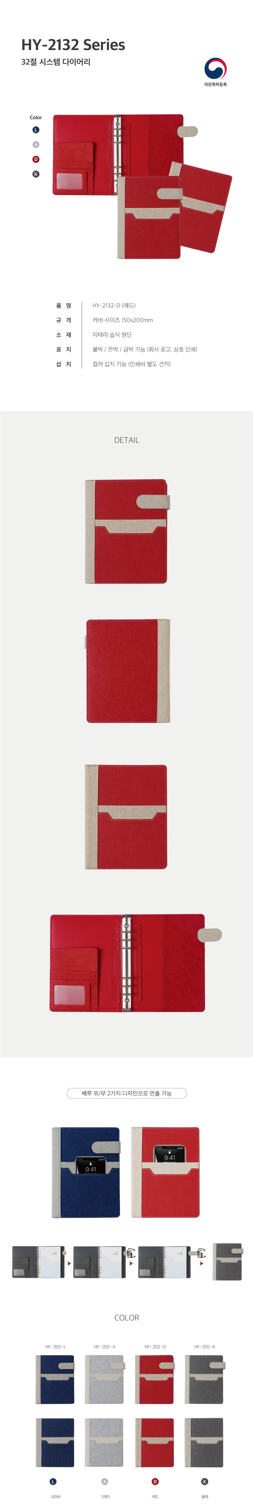 HY 2132 / 6공 시스템 다이어리 / 레드 / 32절