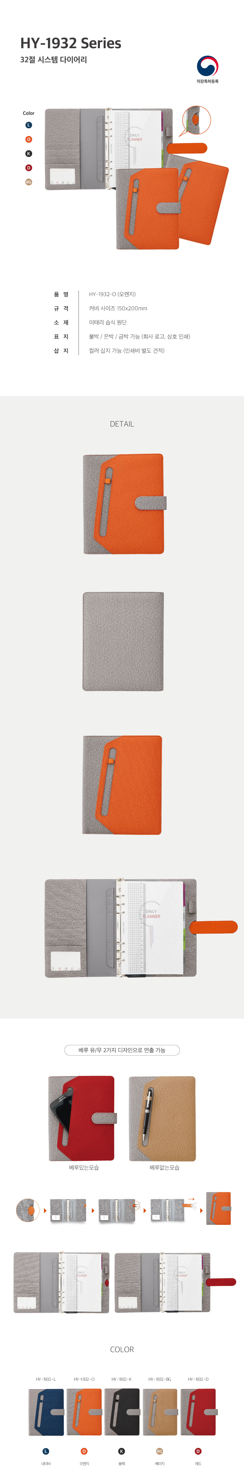 HY 1932 / 6공 시스템 다이어리 / 오렌지 / 32절