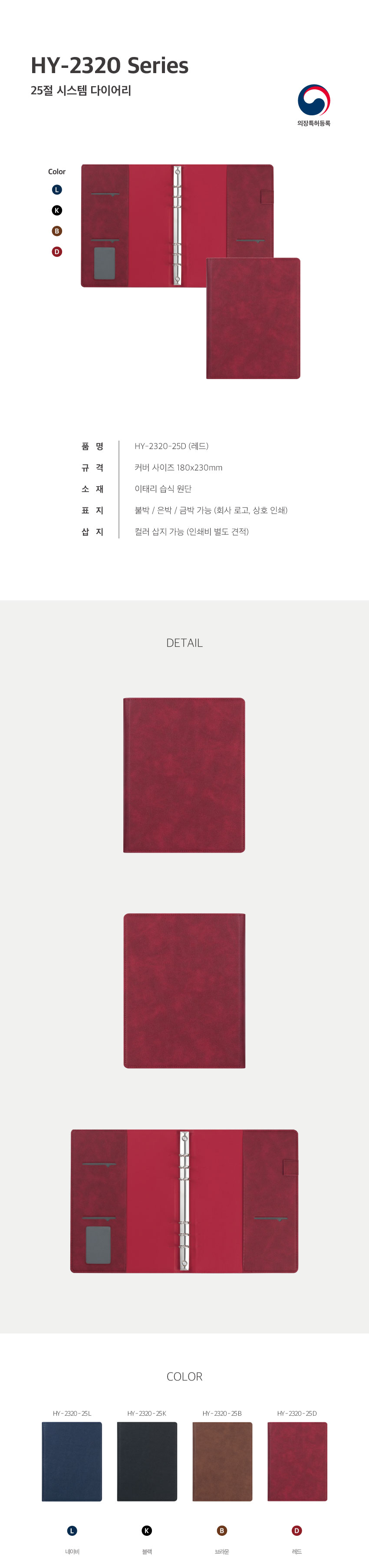 HY 2320-25 / 6공 시스템 다이어리 / 레드 / 25절