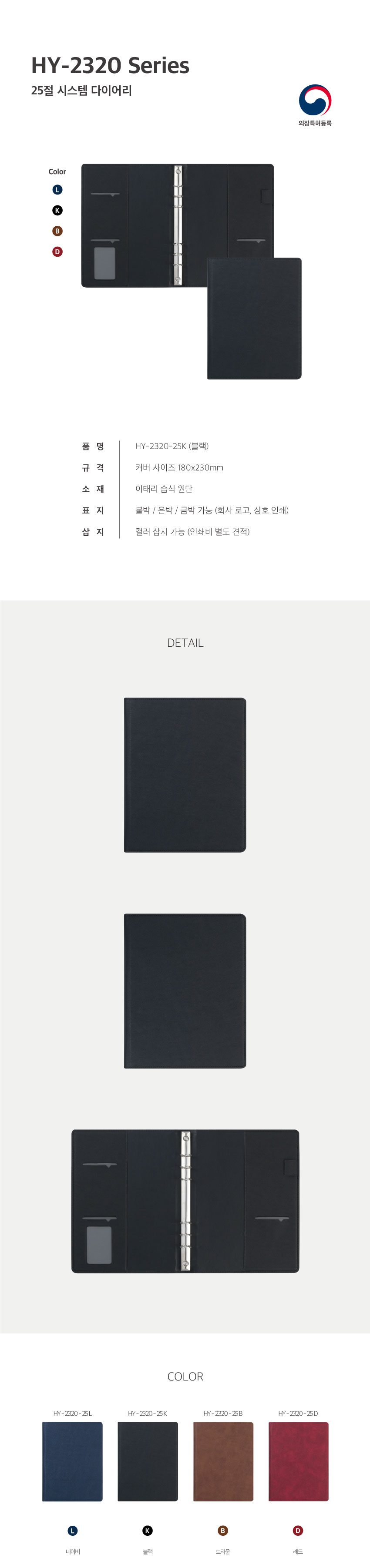 HY 2320-25 / 6공 시스템 다이어리 / 블랙 / 25절