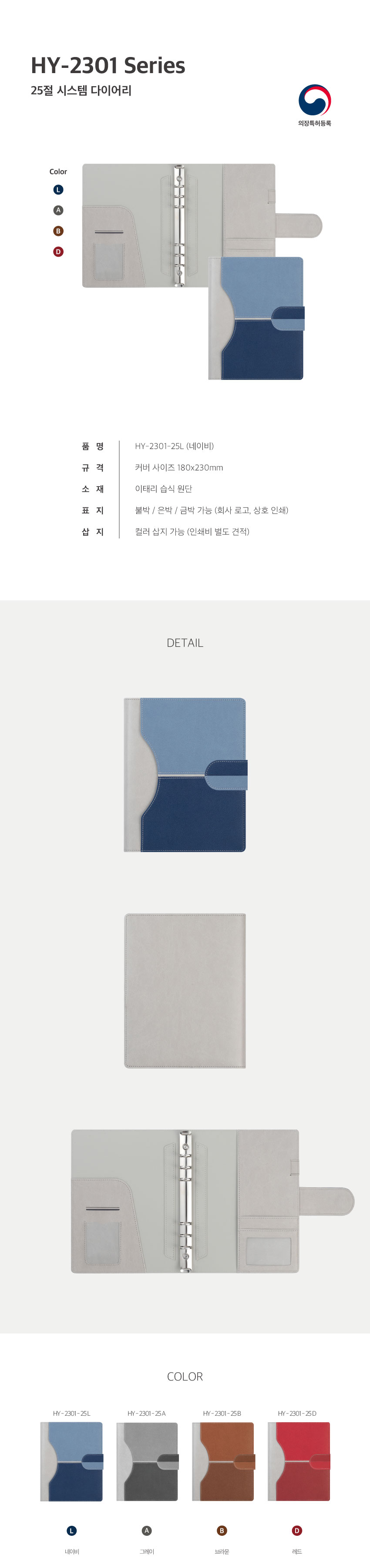 HY 2301-25 6공 시스템 다이어리 / 네이비 / 25절