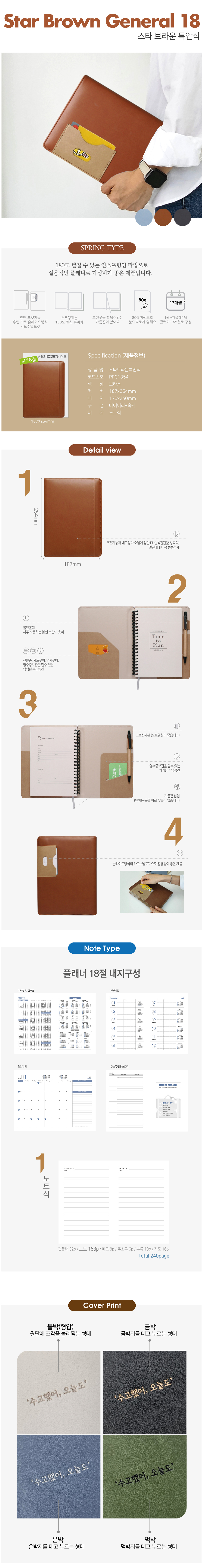 스타 특안식 스프링 다이어리 / 브라운 / 18절