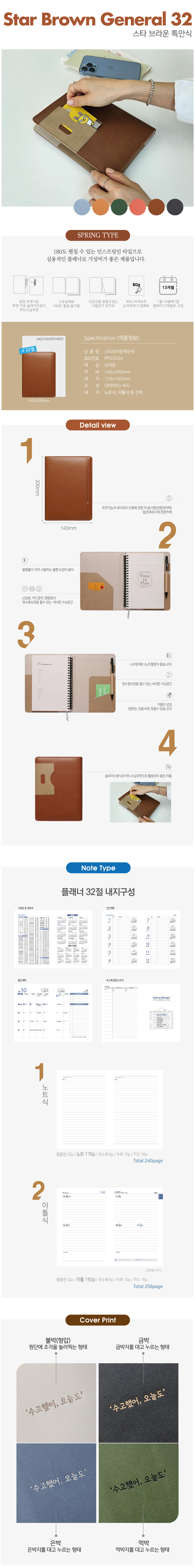 스타 특안식 스프링 다이어리 / 브라운 / 32절