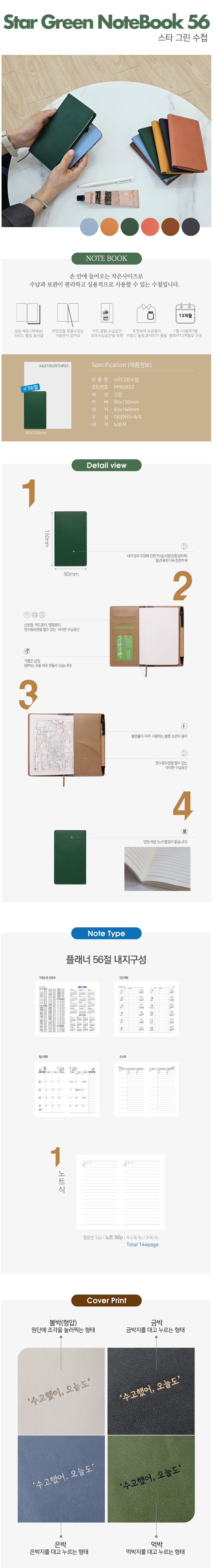 스타 수첩(RM) 다이어리 / 그린 / 56절