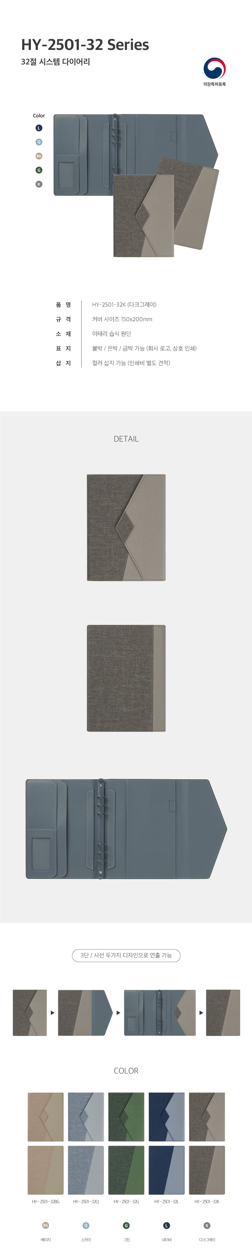 HY 2501-32 3단형 시스템 다이어리 / 다크그레이 / 32절