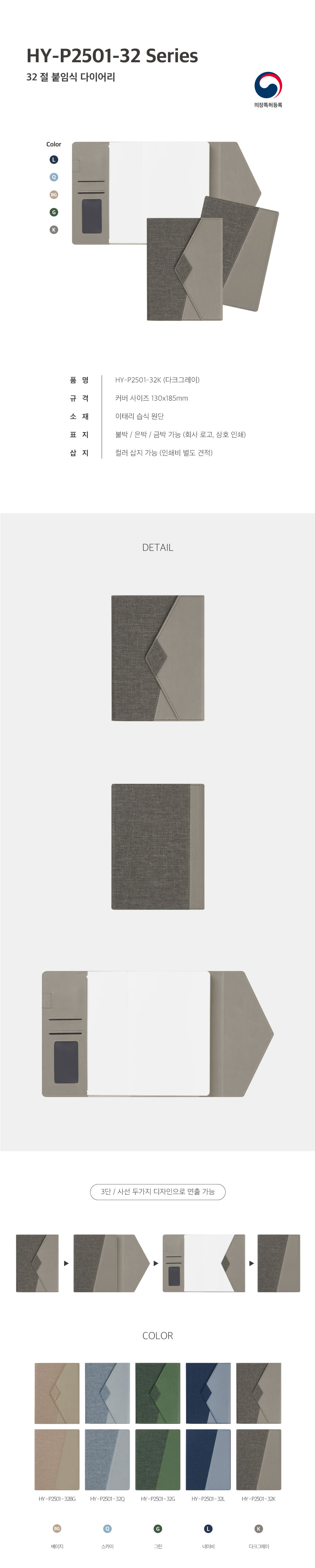 HY P2501-32 3단형 양장(붙임식) 다이어리 / 댜크그레이 / 32절