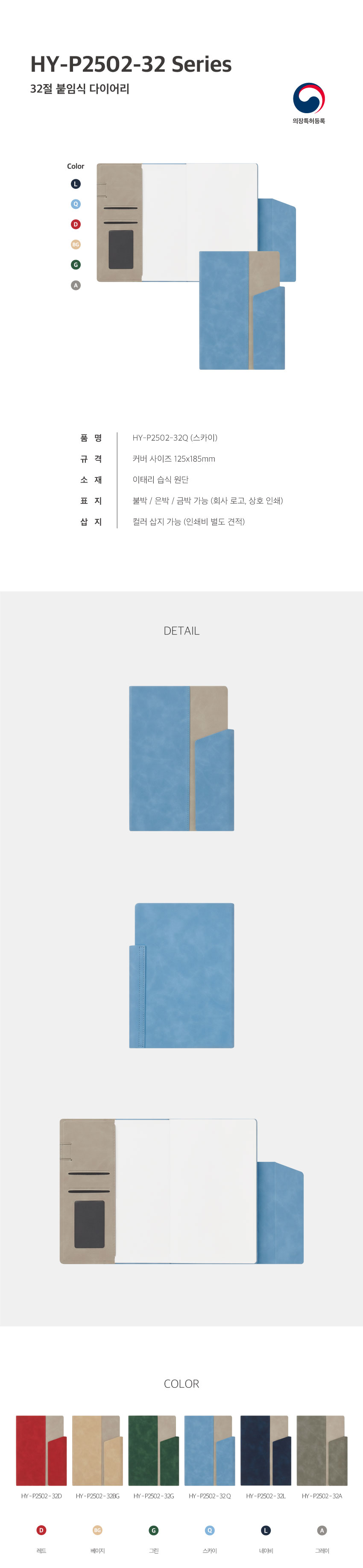 HY P2502-32 3단형 양장(붙임식) 다이어리 / 스카이블루 / 32절
