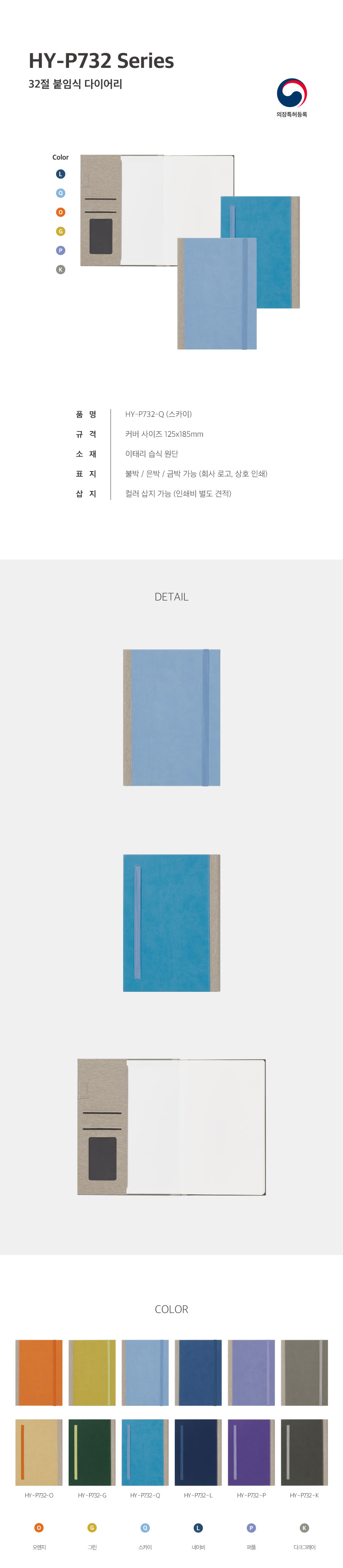 HY P732 양장 붙임식 다이어리 / 스카이블루 / 32절