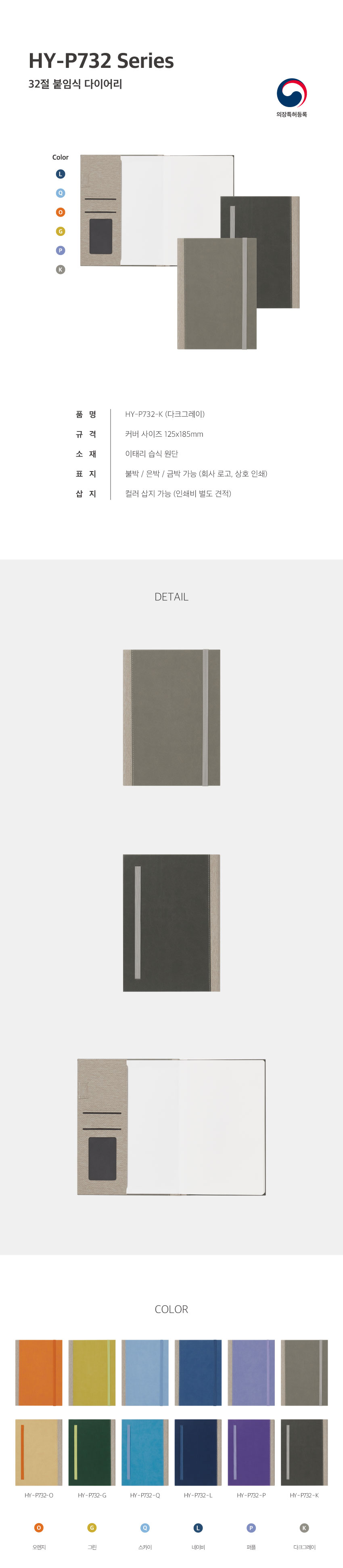 HY P732 양장 붙임식 다이어리 / 다크그레이 / 32절