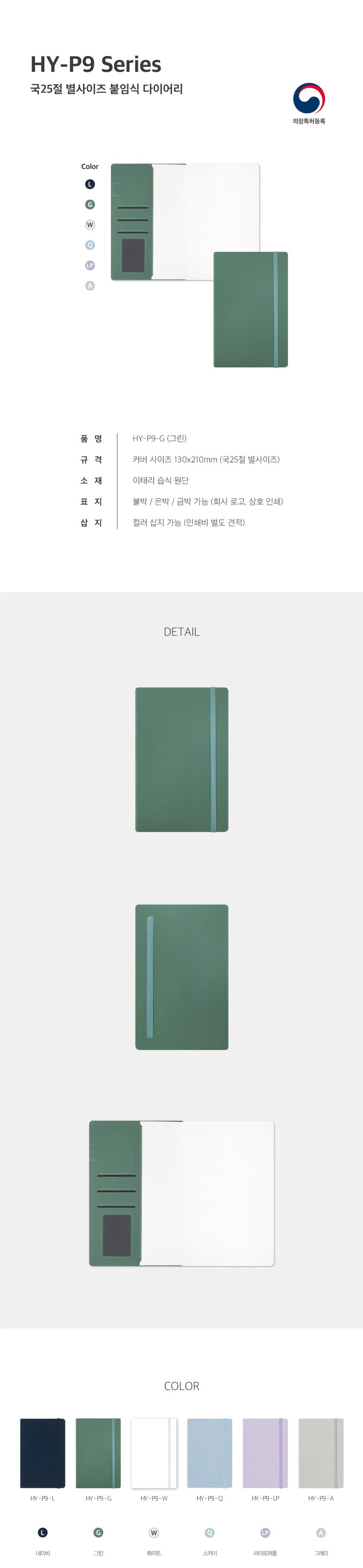 HY P9 별사이즈 양장 다이어리(붙임식) / 그린 / 국25절