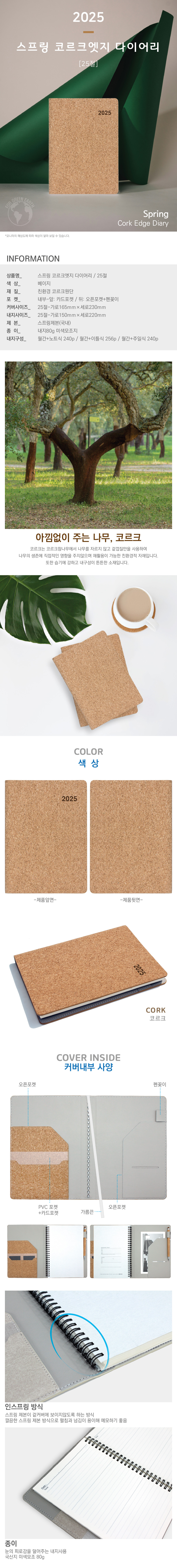 코르크 엣지 특안식 스프링 다이어리 / 코르크 / 25절