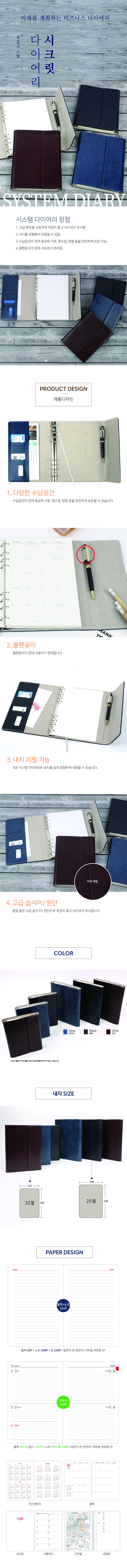 시크릿 시스템 다이어리(8공) / 네이비 / 25절