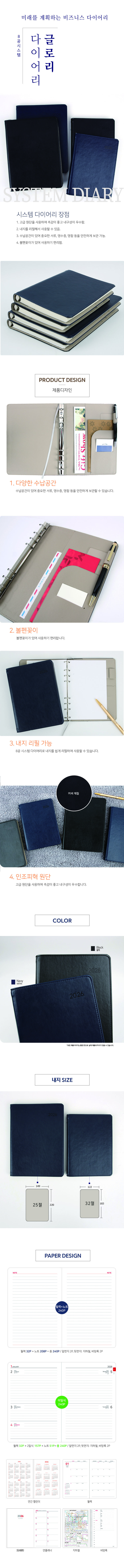 글로리 시스템 다이어리(8공) / 네이비 / 25절