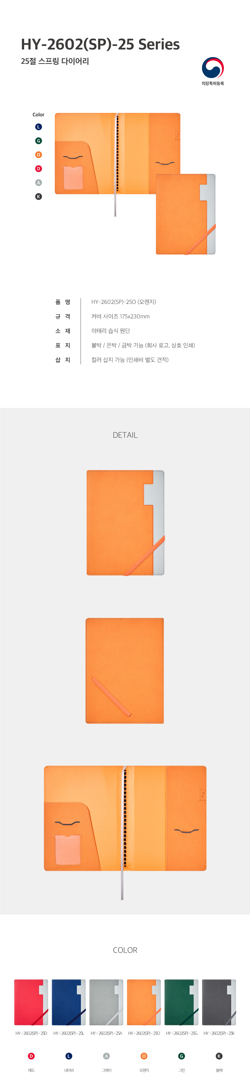 HY2602(SP) 특안식 스프링 다이어리 / 오렌지 / 25절