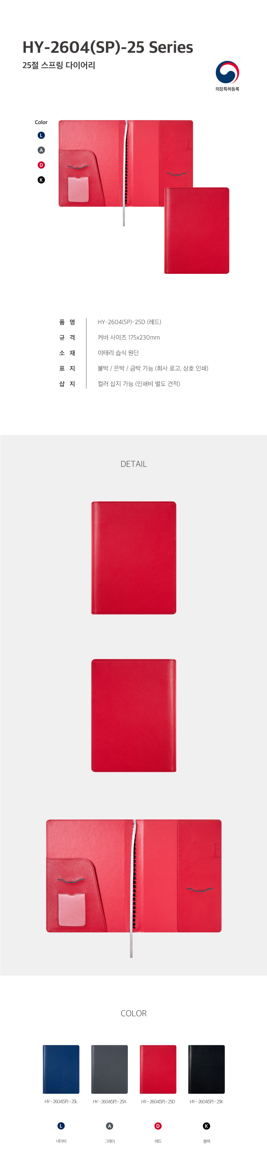 HY 2604(SP) / 특안식 스프링 다이어리 / 레드 / 25절