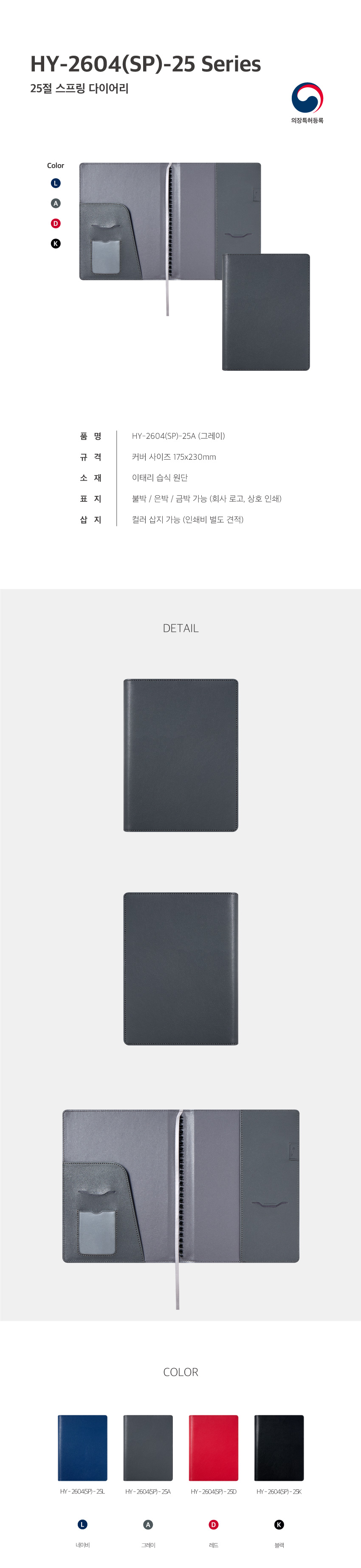 HY 2604(SP) / 특안식 스프링 다이어리 / 그레이 / 25절