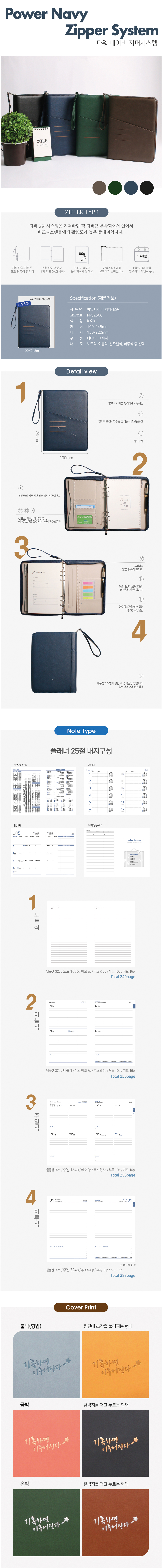파워 지퍼 시스템 다이어리 / 네이비 블루 / 25절