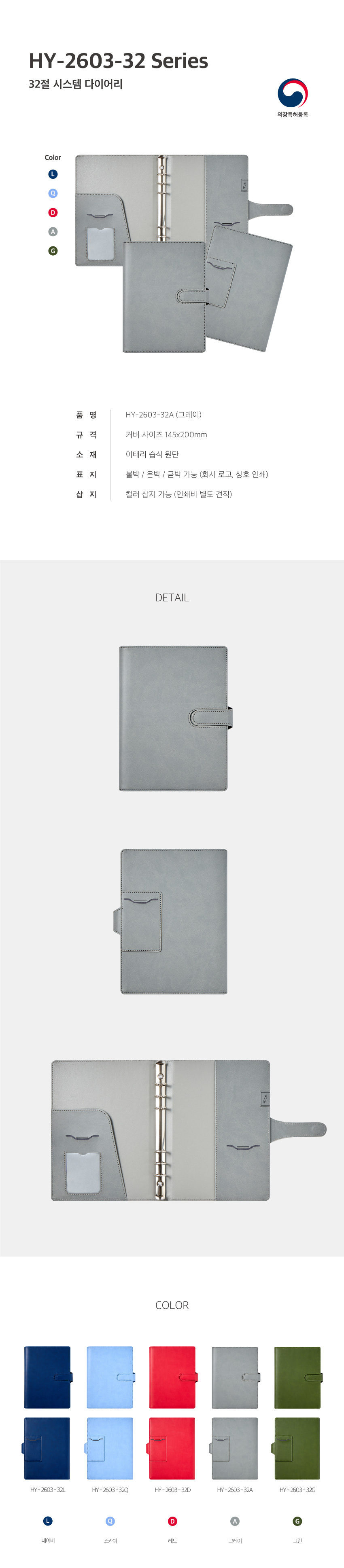 HY 2603 시스템 다이어리 / 그레이 / 32절