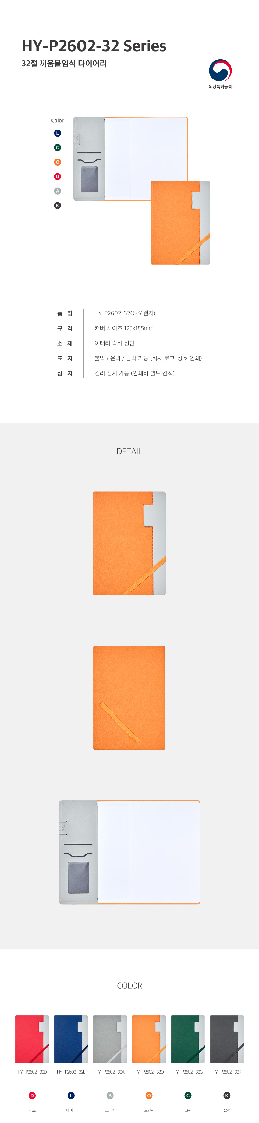 HY P2602-32 양장 붙임식 다이어리 / 오렌지 / 32절