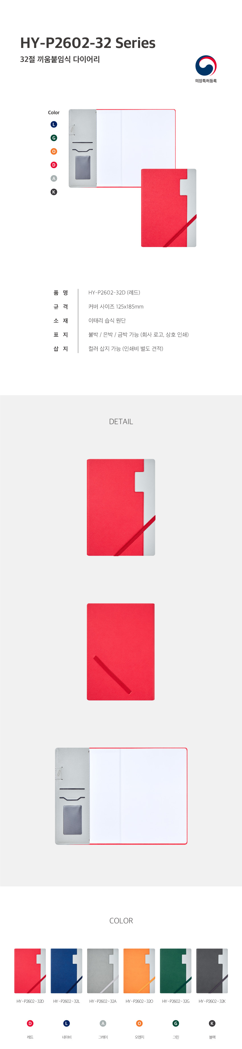 HY P2602-32 양장 붙임식 다이어리 / 레드 / 32절